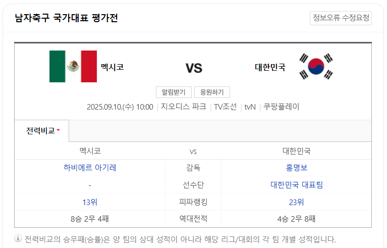 - 경기성격: 2026 FIFA 월드컵 대비 실전 테스트