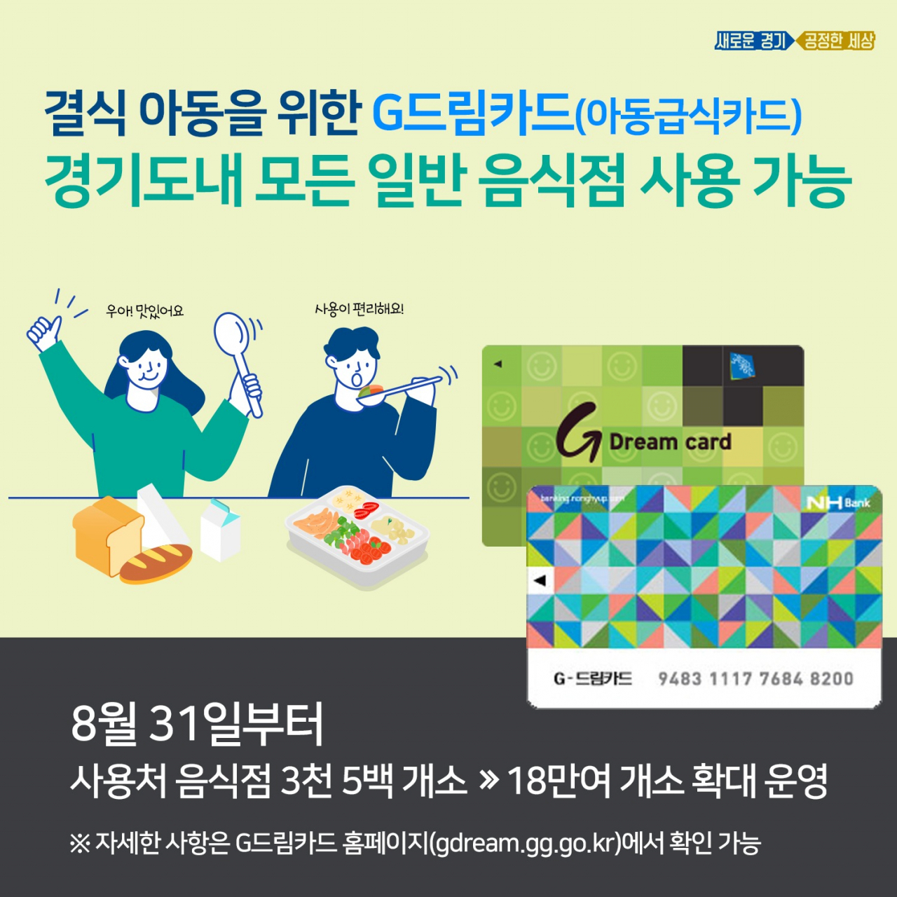 - A5. 현재는 오프라인 가맹점에서만 사용 가능하며, 온라인 결제는 지원되지 않습니다. 이는 아동급식카드의 본래 목적인 균형 잡힌 식사 제공을 위한 정책적 이유 때문입니다.