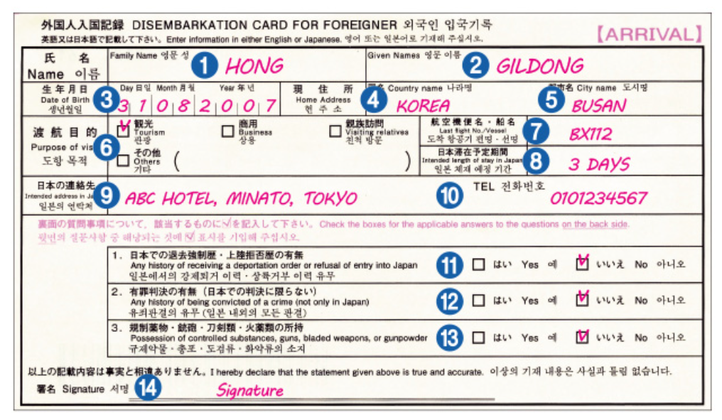 정확한 일본 입국신고서 작성법을 따르지 않으면 입국이 지연되거나 최악의 경우 입국이 거부될 수 있으므로 주의가 필요합니다.