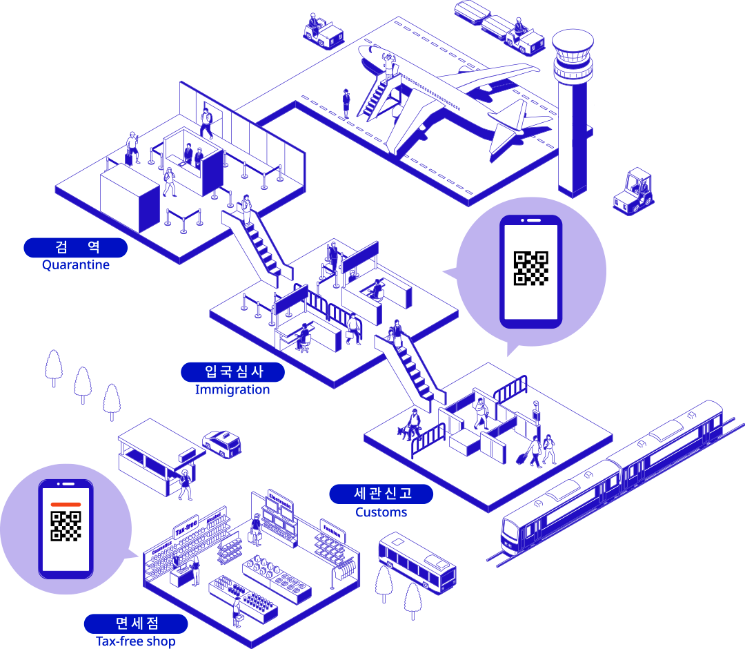 - 입국 심사, 세관 신고, 검역 절차를 모두 한 번에 처리