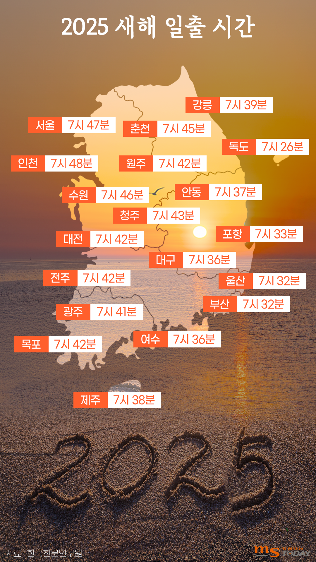 새해 일출을 보며 새로운 한 해의 소망을 빌어보세요. 전국 각지의 아름다운 일출 명소에서 특별한 2025년 새해를 맞이하시기 바랍니다. 해돋이 시간을 정확히 확인하고 미리 계획을 세운다면, 더욱 의미 있는 새해 일출 관람이 될 것입니다.